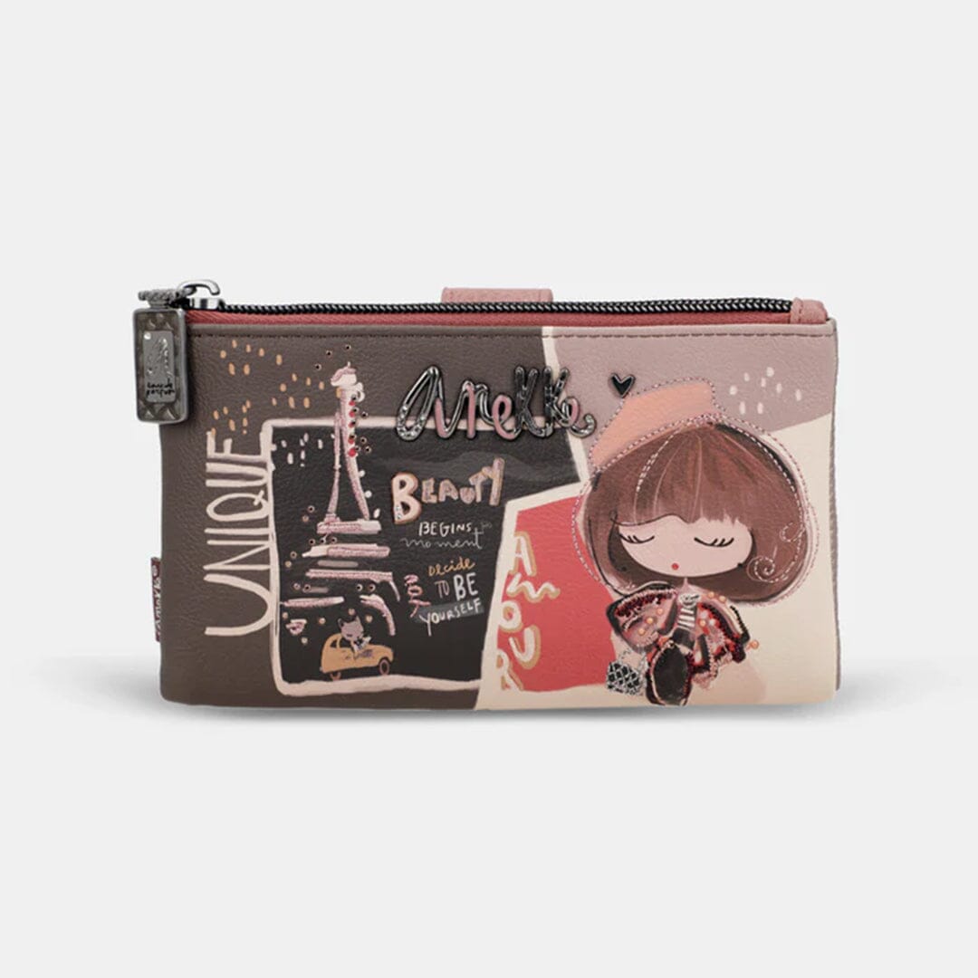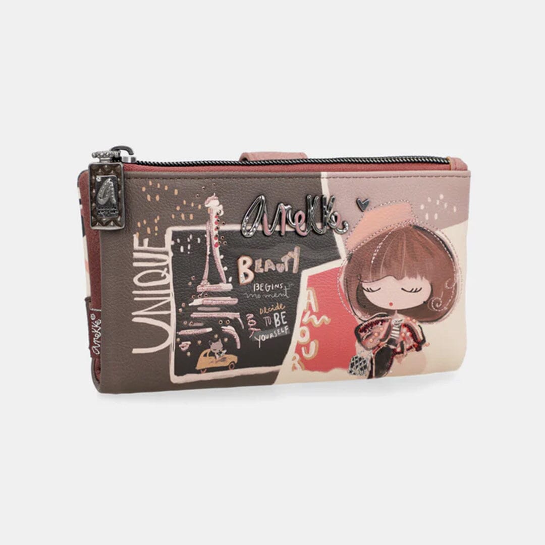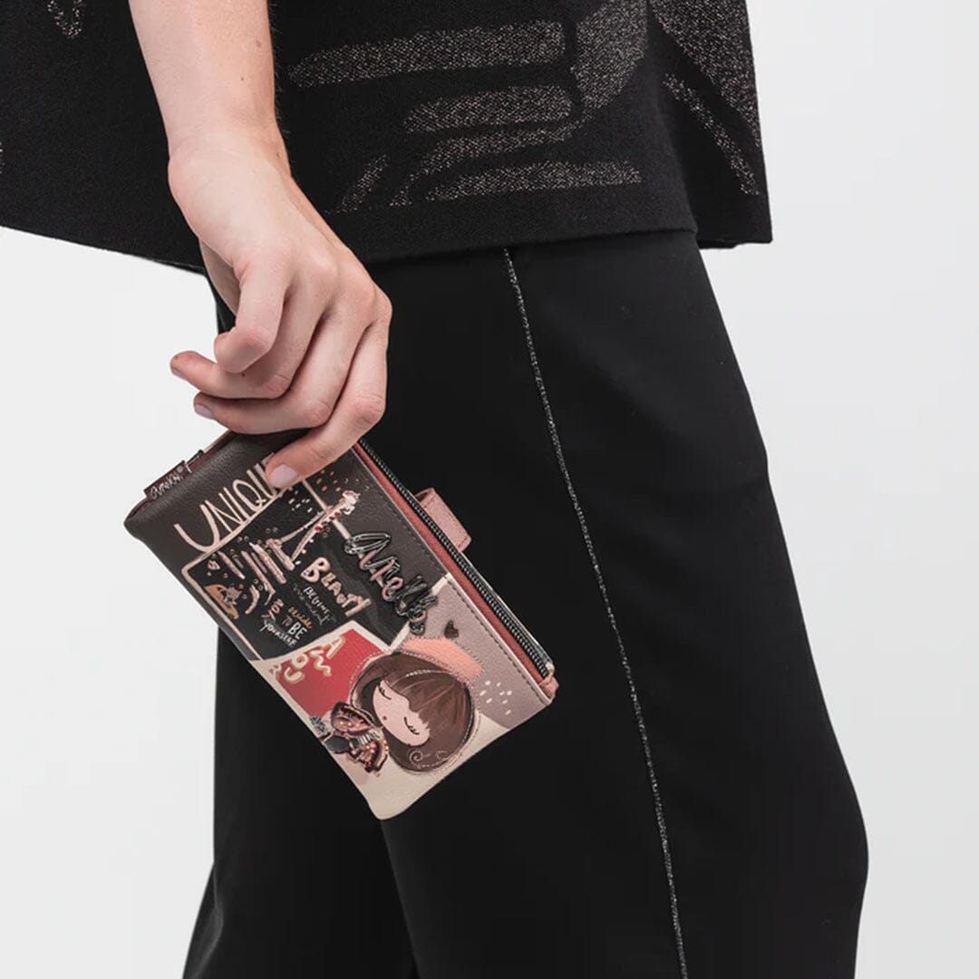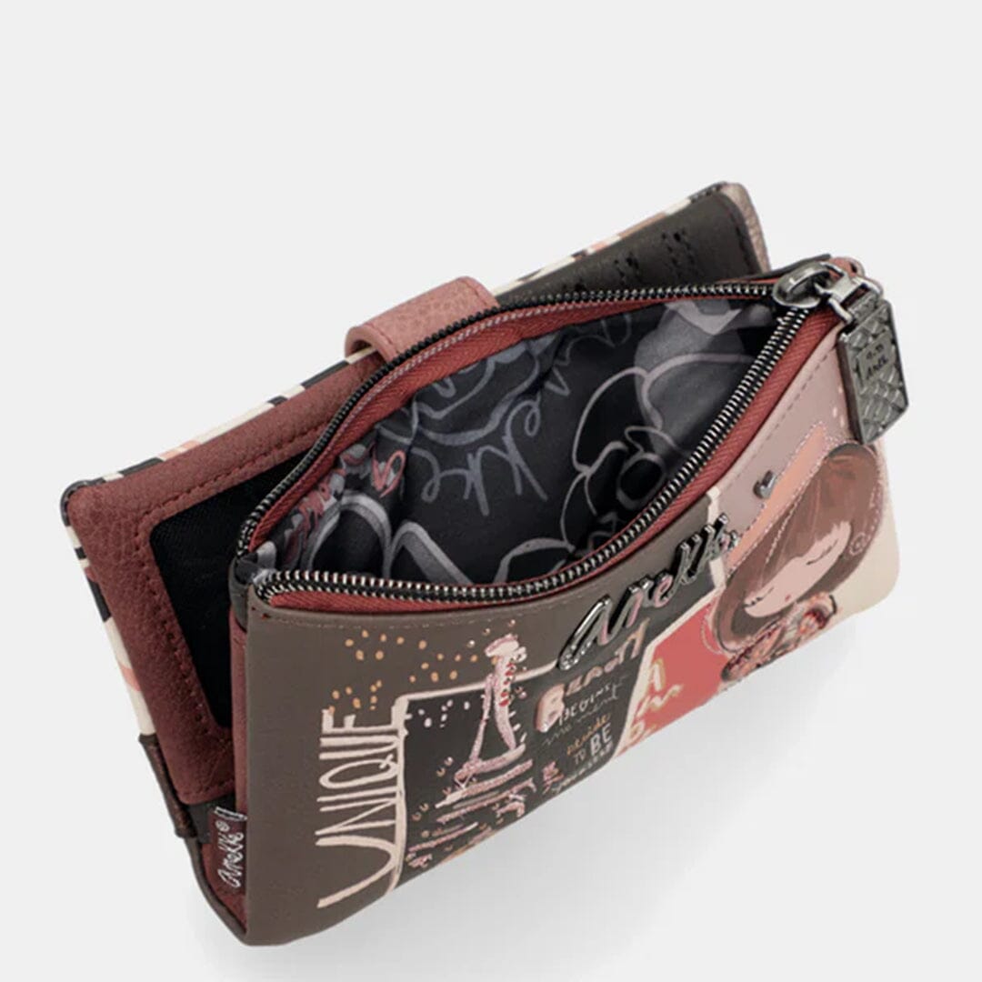 Carteira flexível Anekke com um compartimento com fecho para moedas, espaço para cartões, organização interna e divisão para notas. Com proteção RFID.