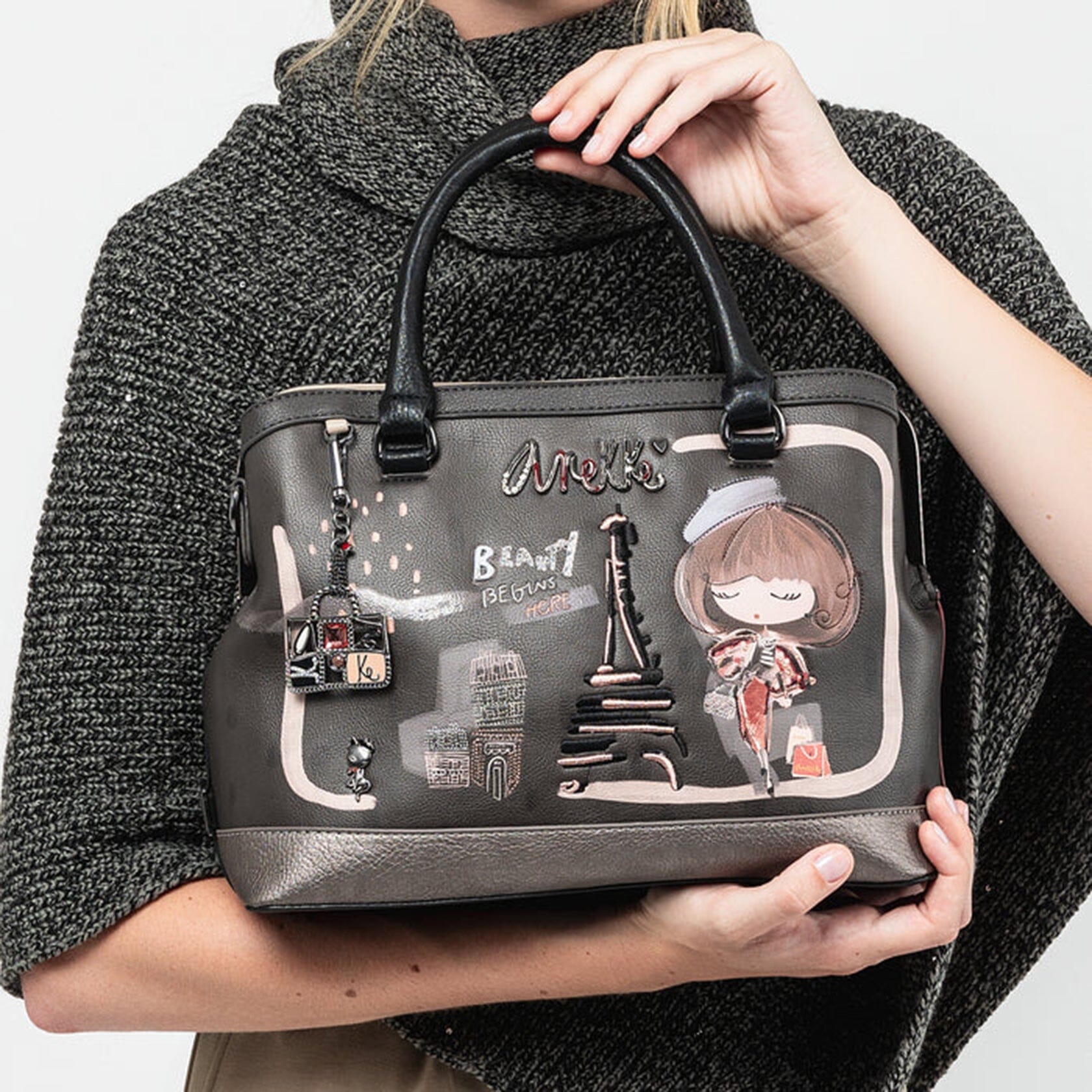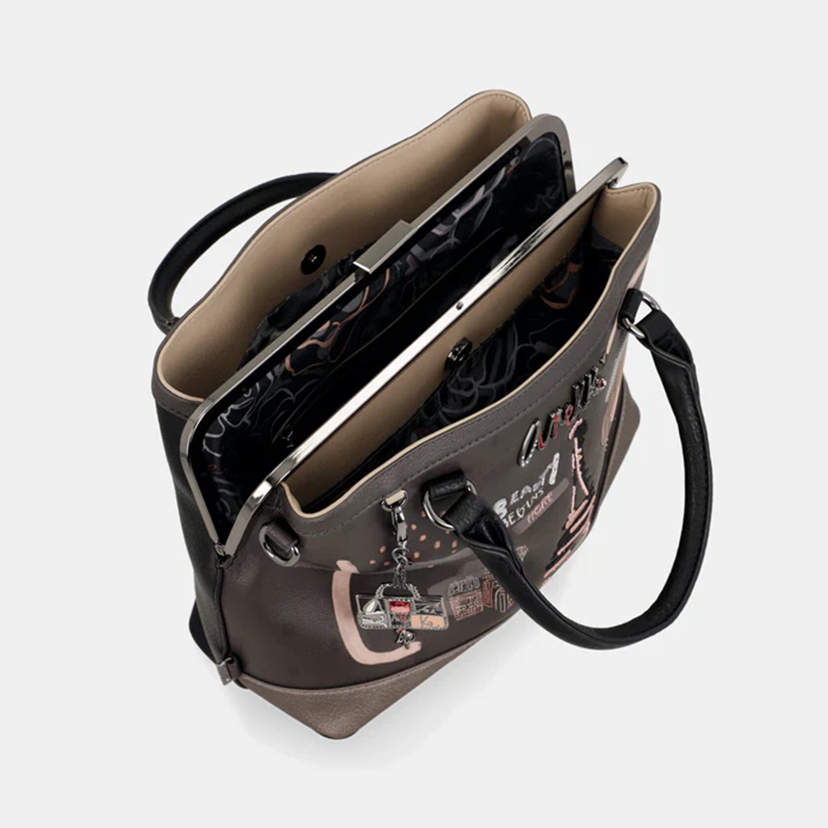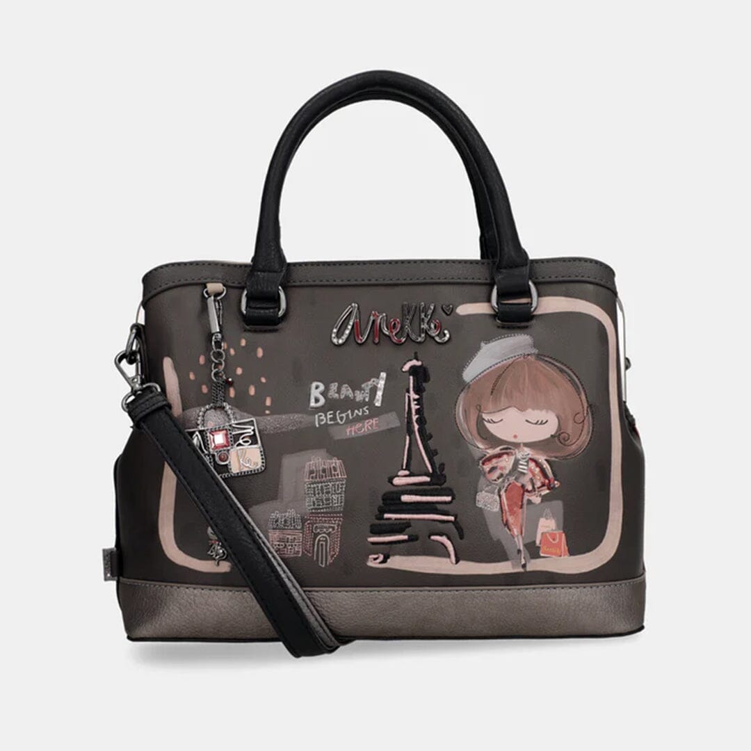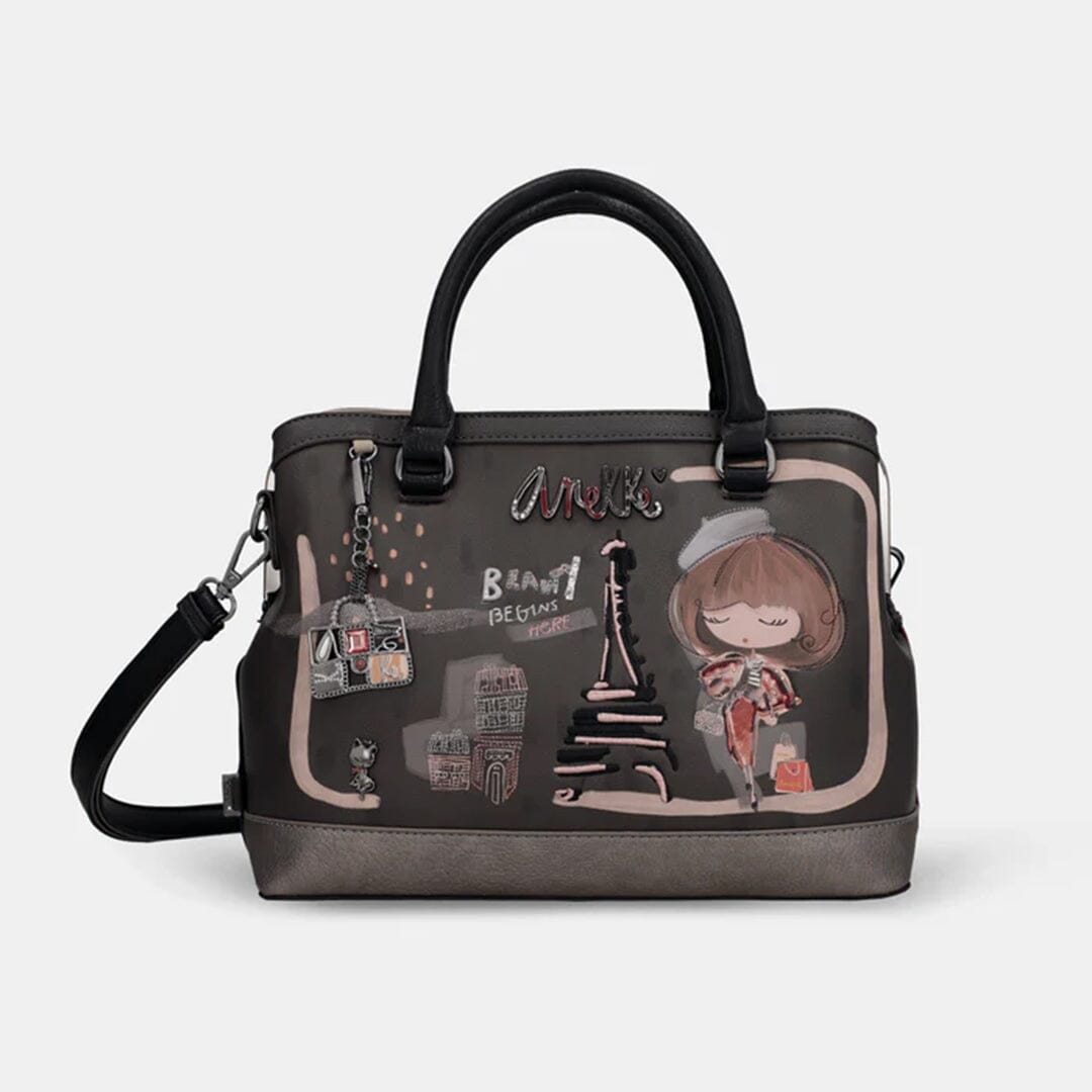 Mala de mão Anekke com três compartimentos, o principal com mola, tiracolo amovível e ajustável, bolso exterior e interior com fechos.