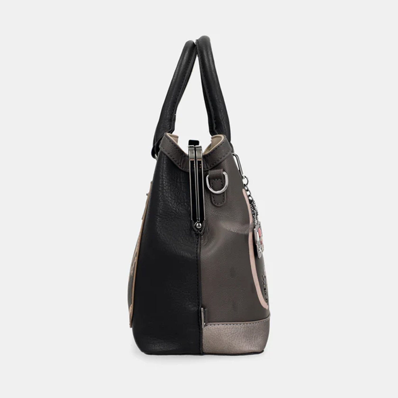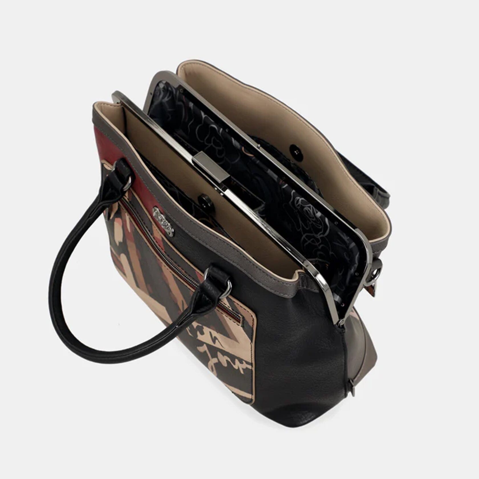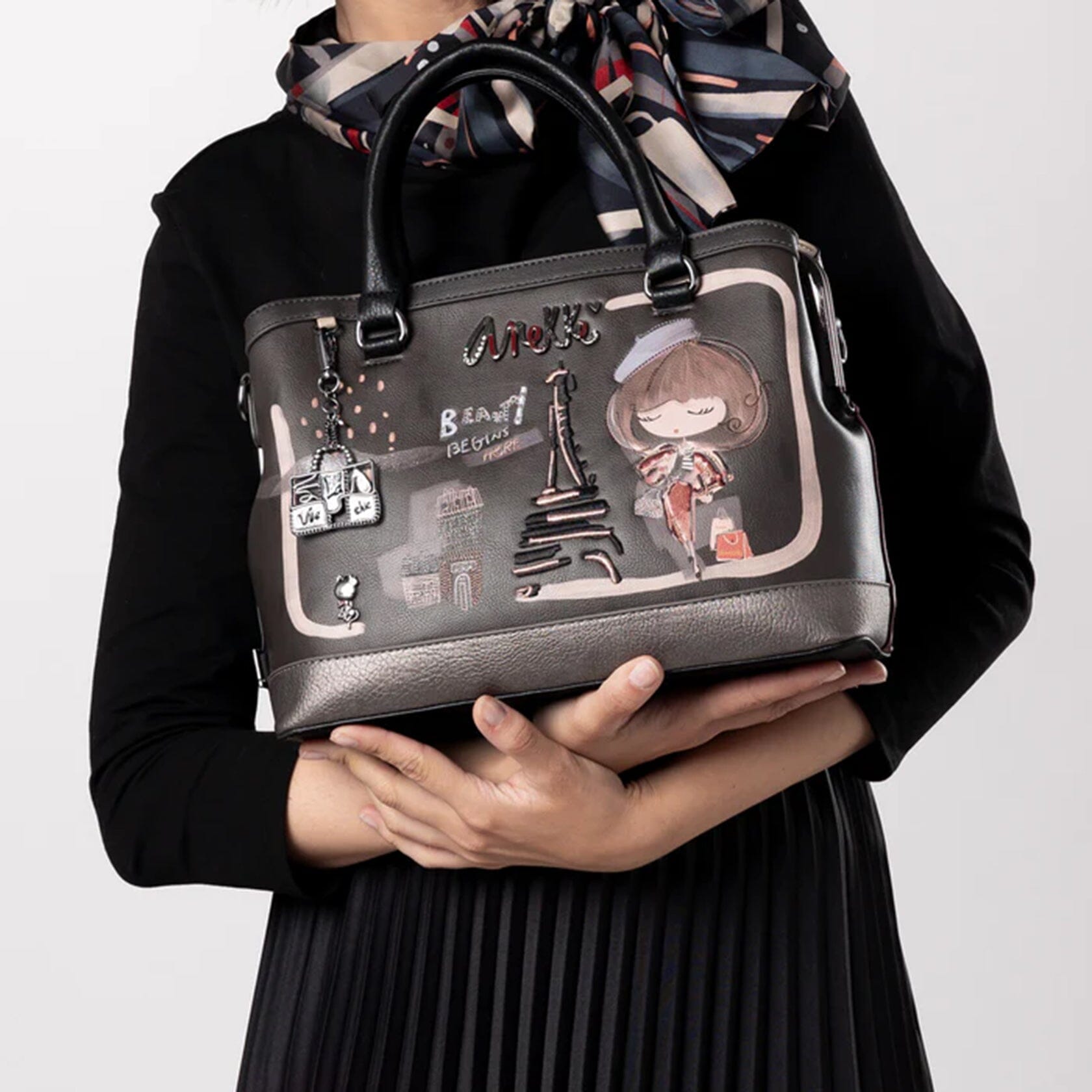 Mala de mão Anekke com três compartimentos, o principal com mola, tiracolo amovível e ajustável, bolso exterior e interior com fechos.