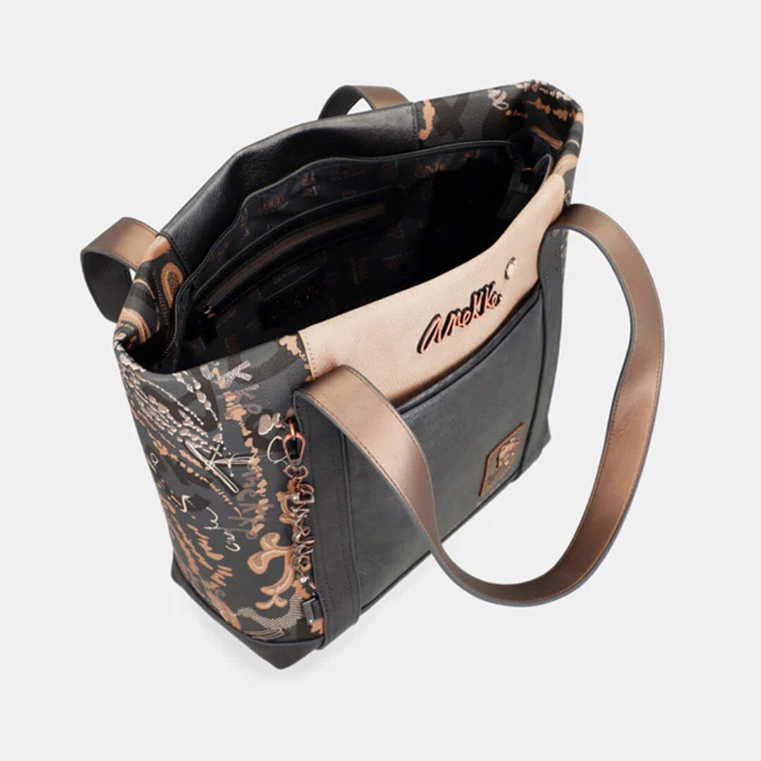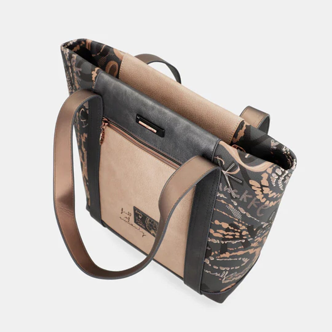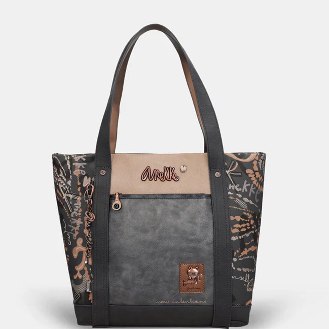 Mala de ombro Anekke com um compartimento principal com fecho, bolsos exteriores com fechos. Interior com bolsos com fecho e multiusos.