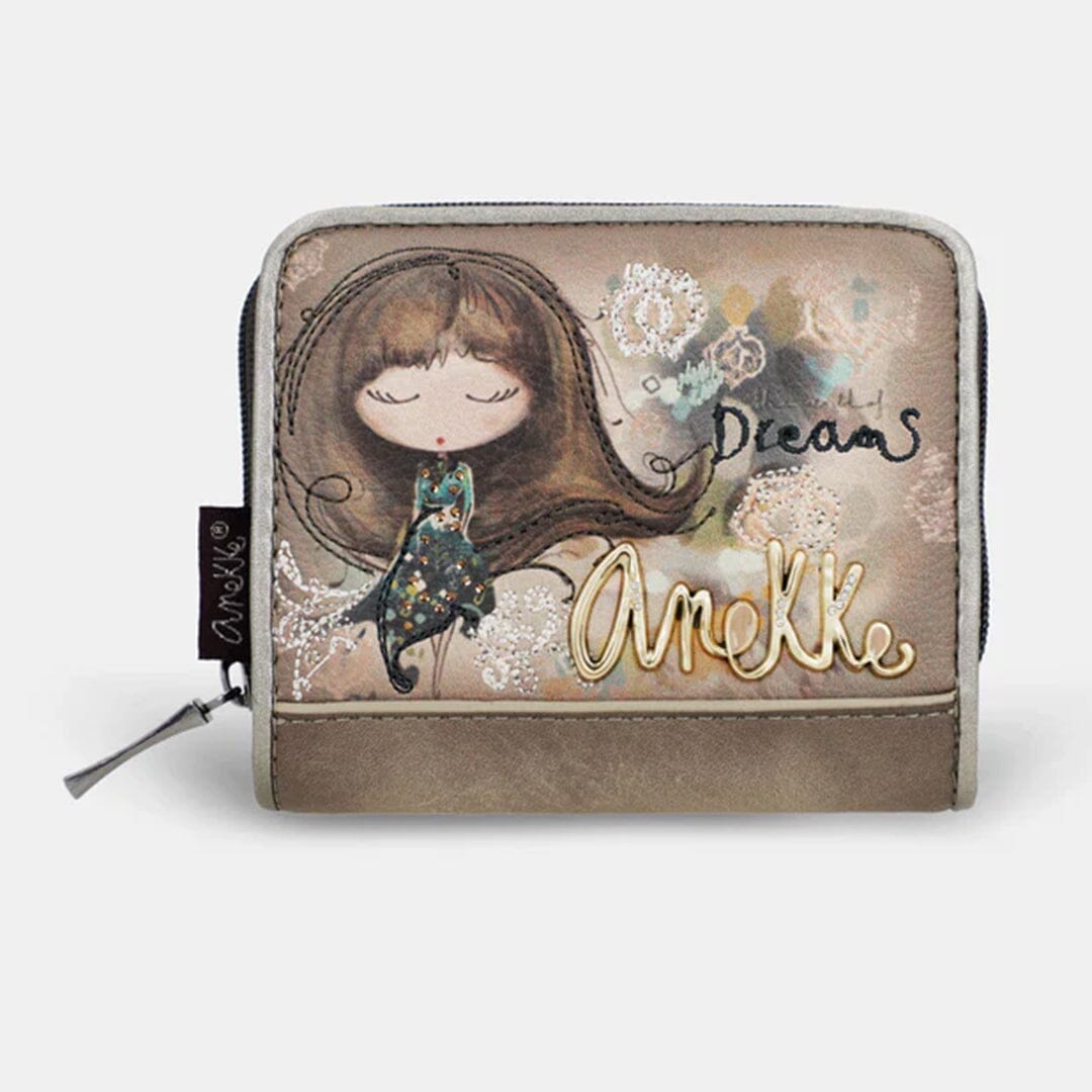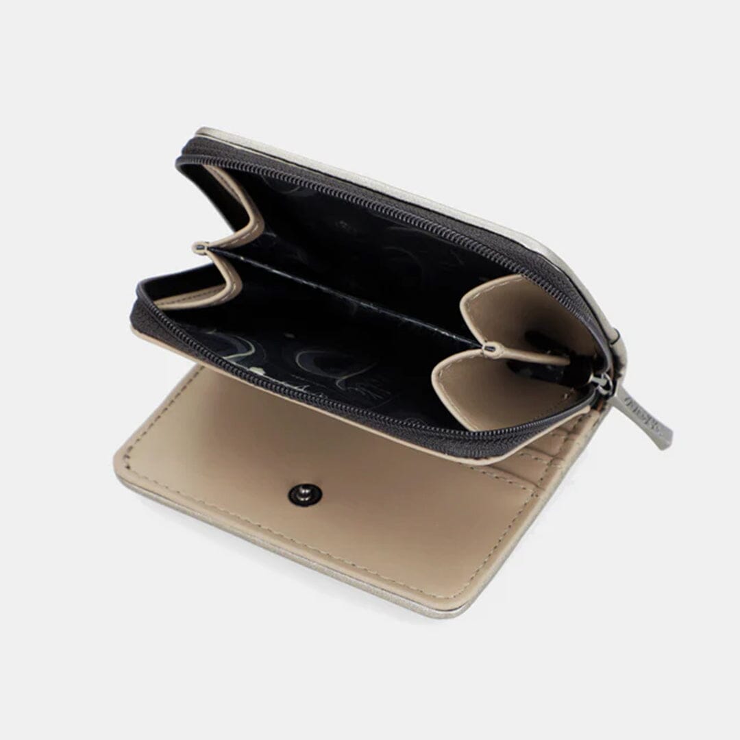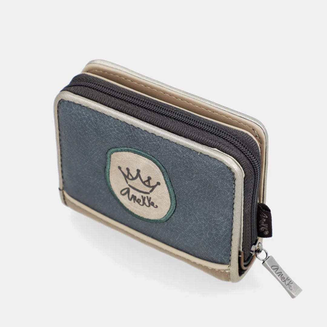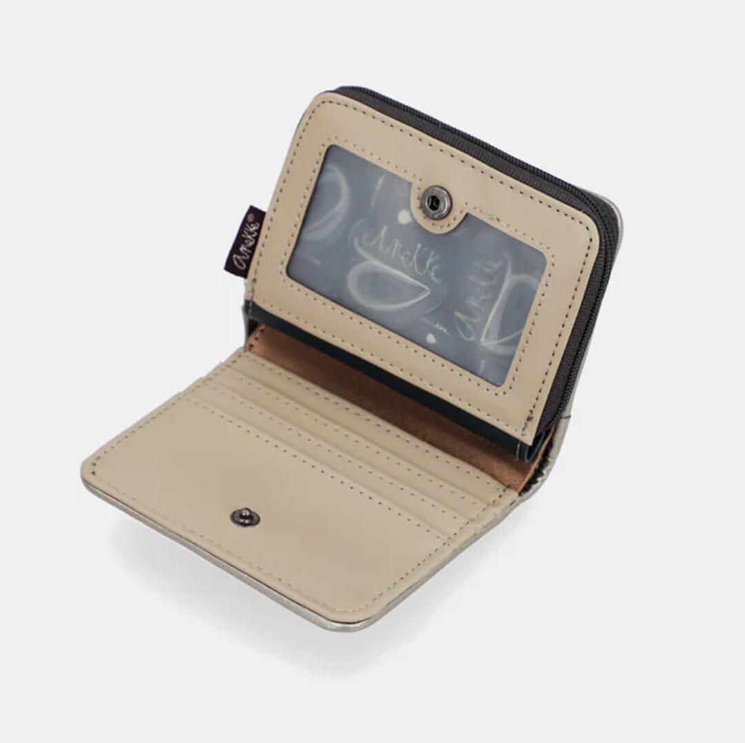 Carteira pequena Anekke com um compartimento com fecho para as moedas, um compartimento com mola magnética, espaço para cartões e transparência. Com proteção RFID*
