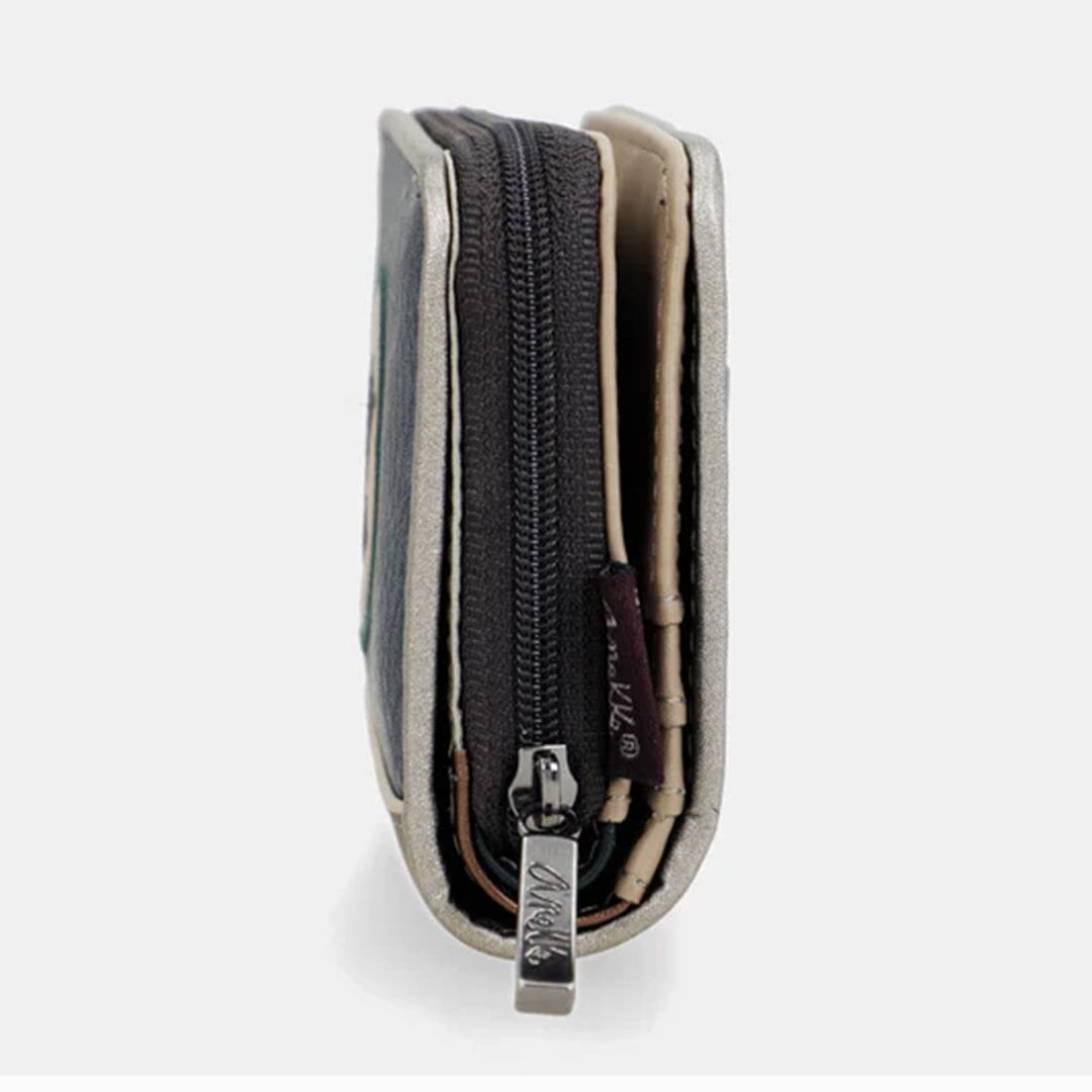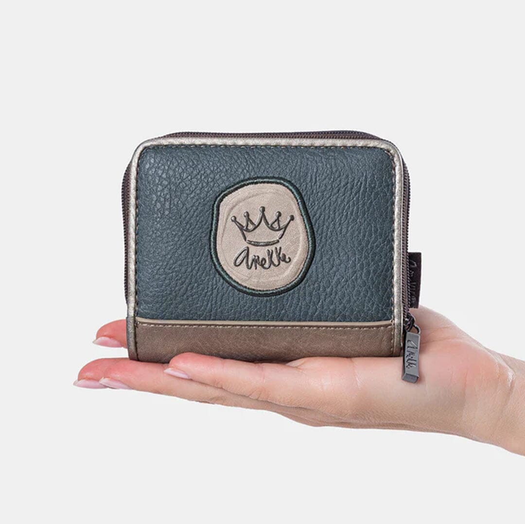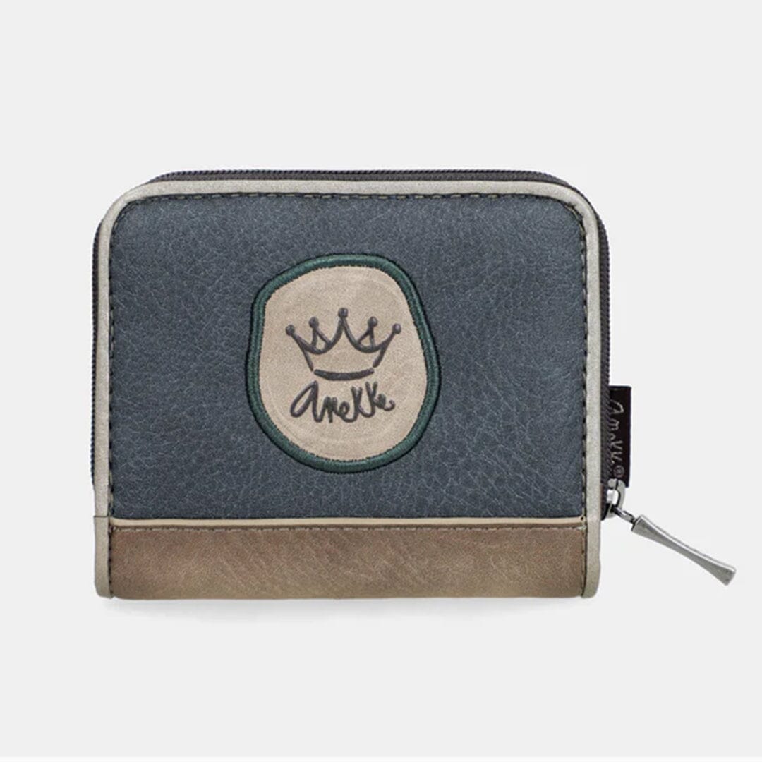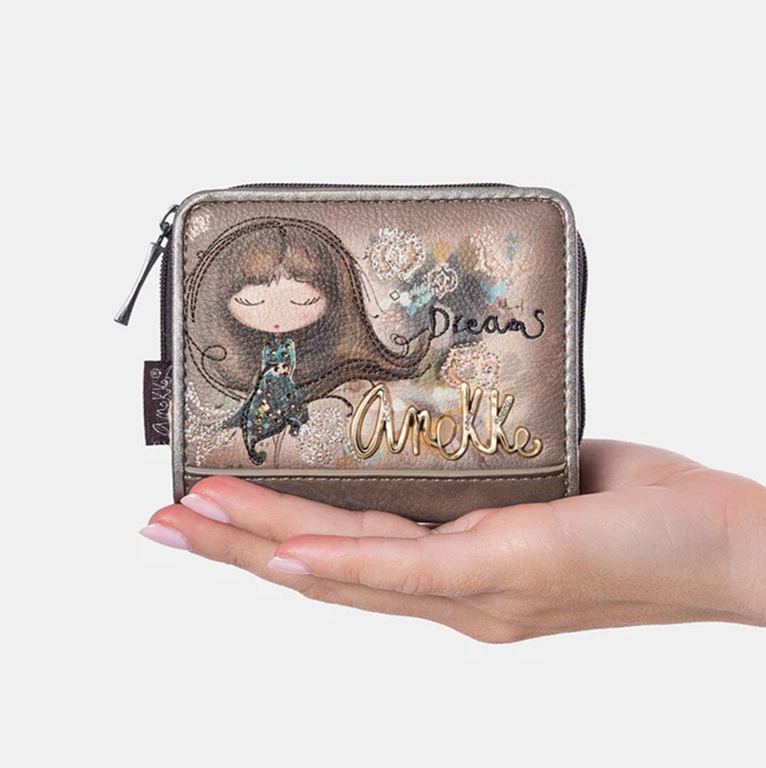 Carteira pequena Anekke com um compartimento com fecho para as moedas, um compartimento com mola magnética, espaço para cartões e transparência. Com proteção RFID*