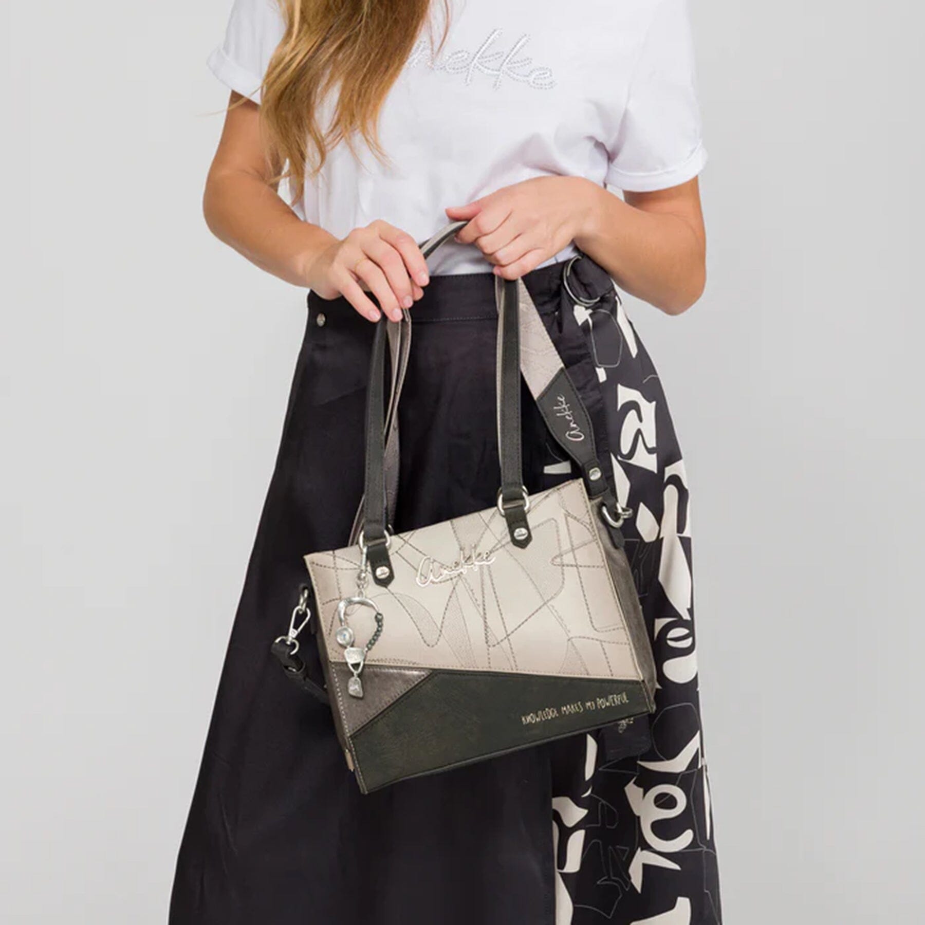 Mala de ombro Anekke com um compartimento principal com fecho, tiracolo amovível e ajustável, bolso exterior com fecho. Interior com bolsos com fecho e multiusos.