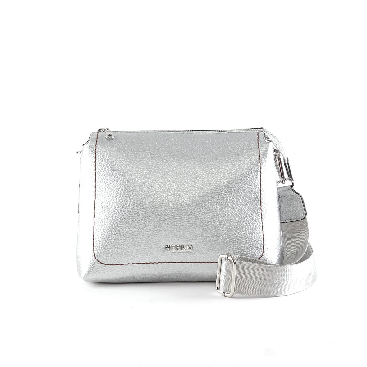 Esta mala tiracolo da Erium destaca-se pelo seu acabamento moderno e sofisticado, ideal para quem procura um acessório prático com um toque contemporâneo. Confeccionada em material de alta qualidade com textura granulada e acabamento metalizado, apresenta um visual distinto que eleva qualquer look.