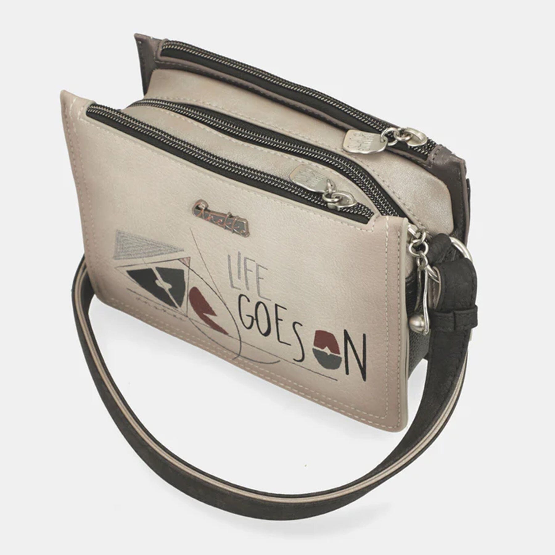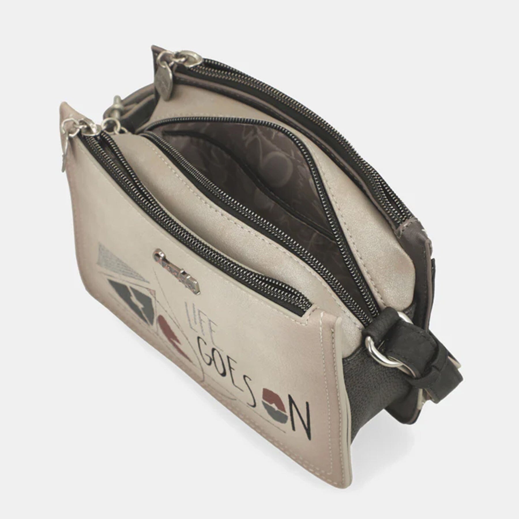Mala de tiracolo ajustável Anekke com três compartimentos com fechos. Interior com bolsos.