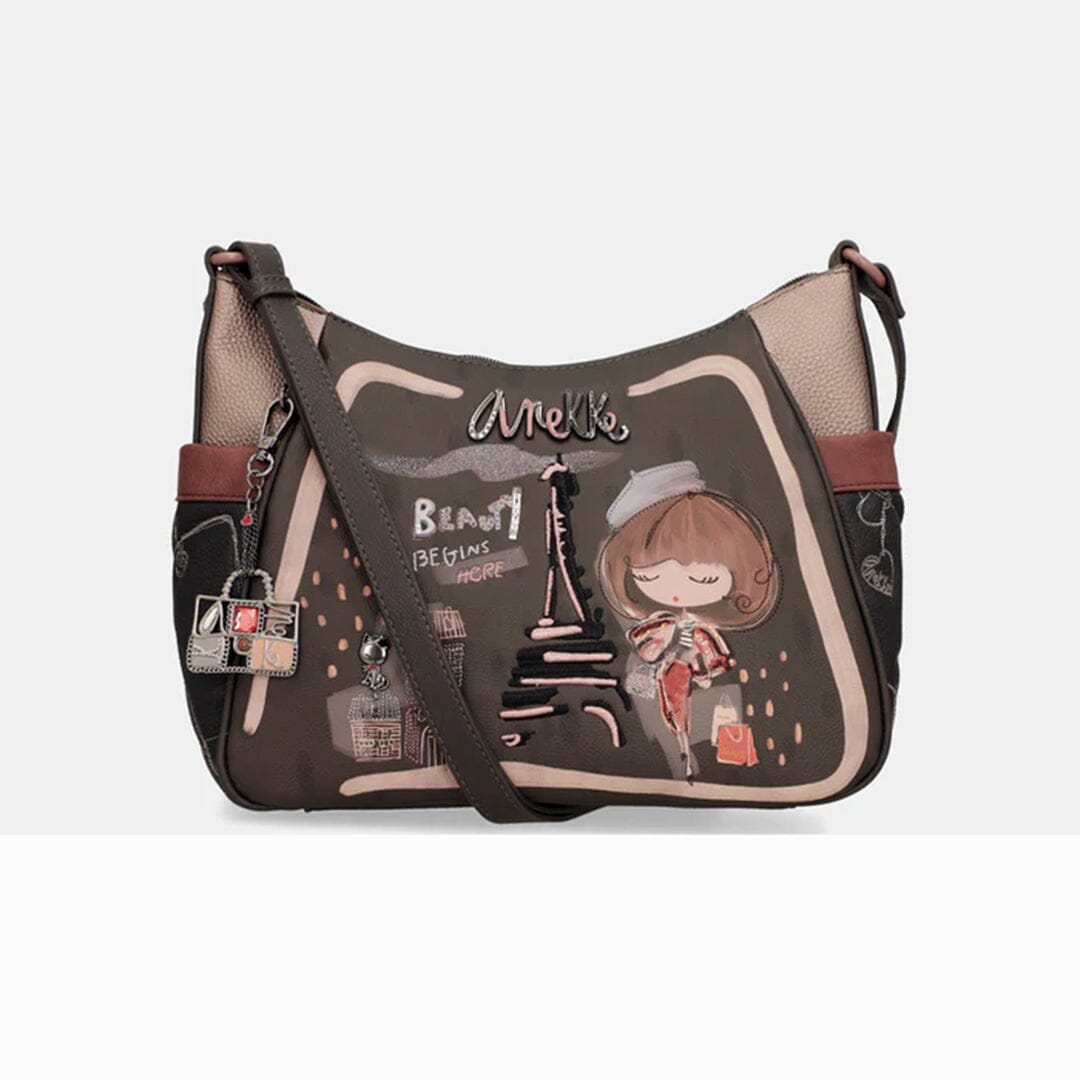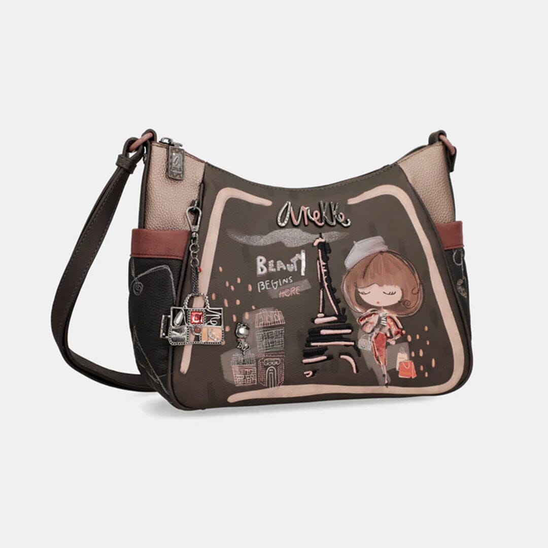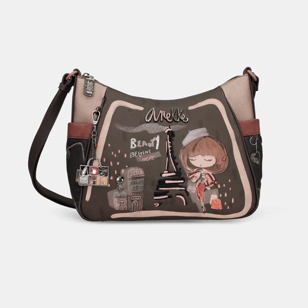 Mala de tiracolo ajustável Anekke com um compartimento principal com fecho, bolsos laterais, bolso exterior com fecho. Interior contém bolsos com fecho e multiusos.
