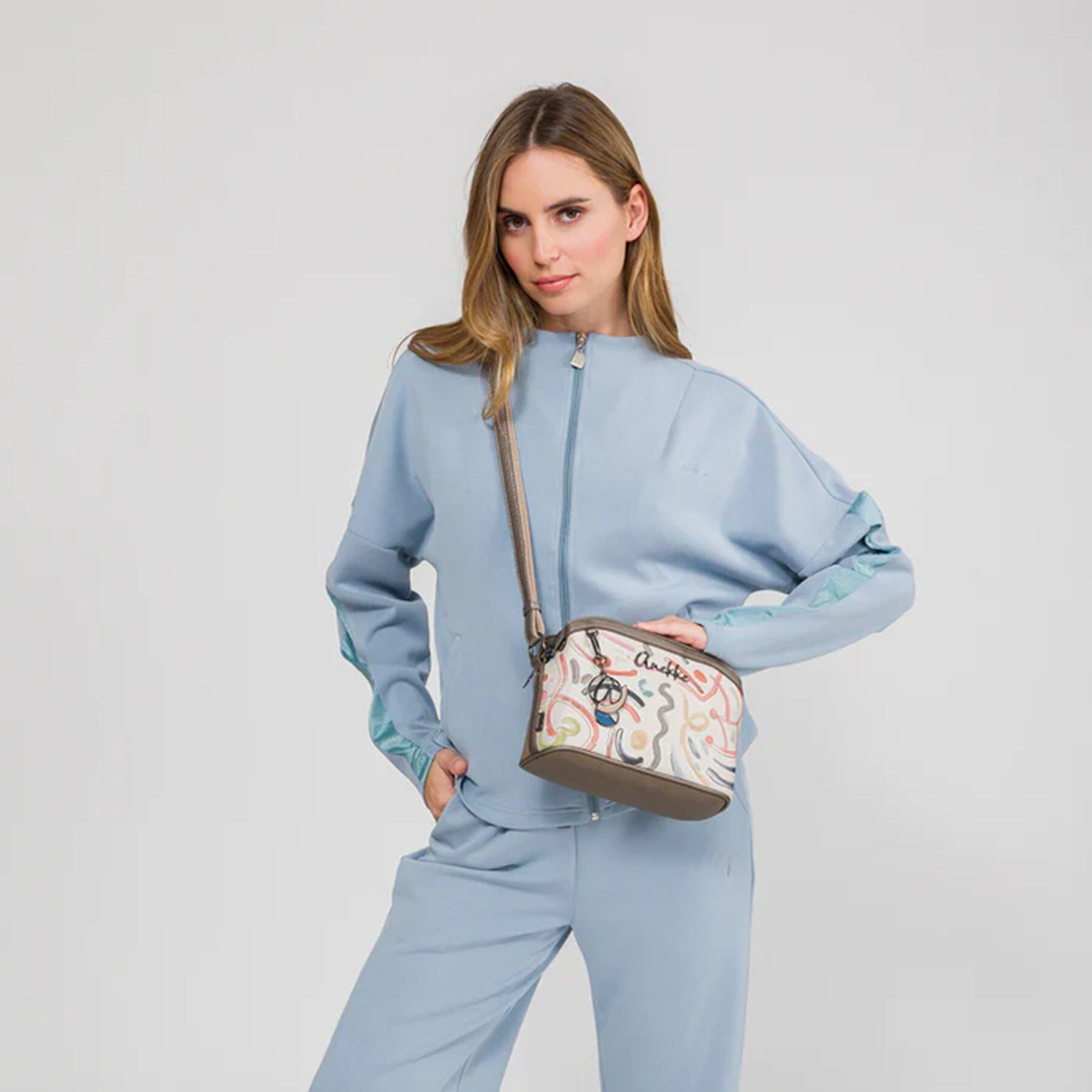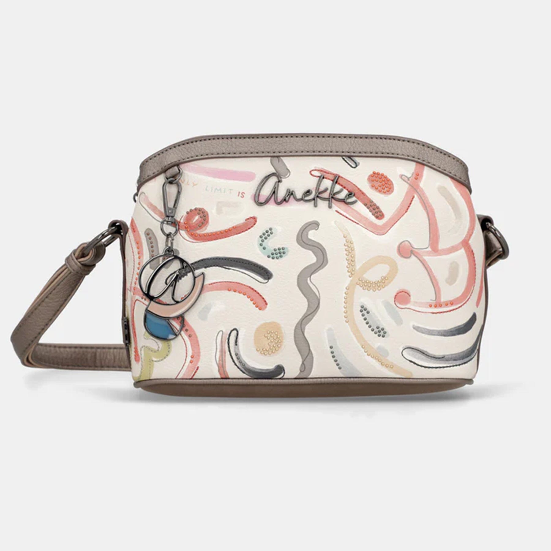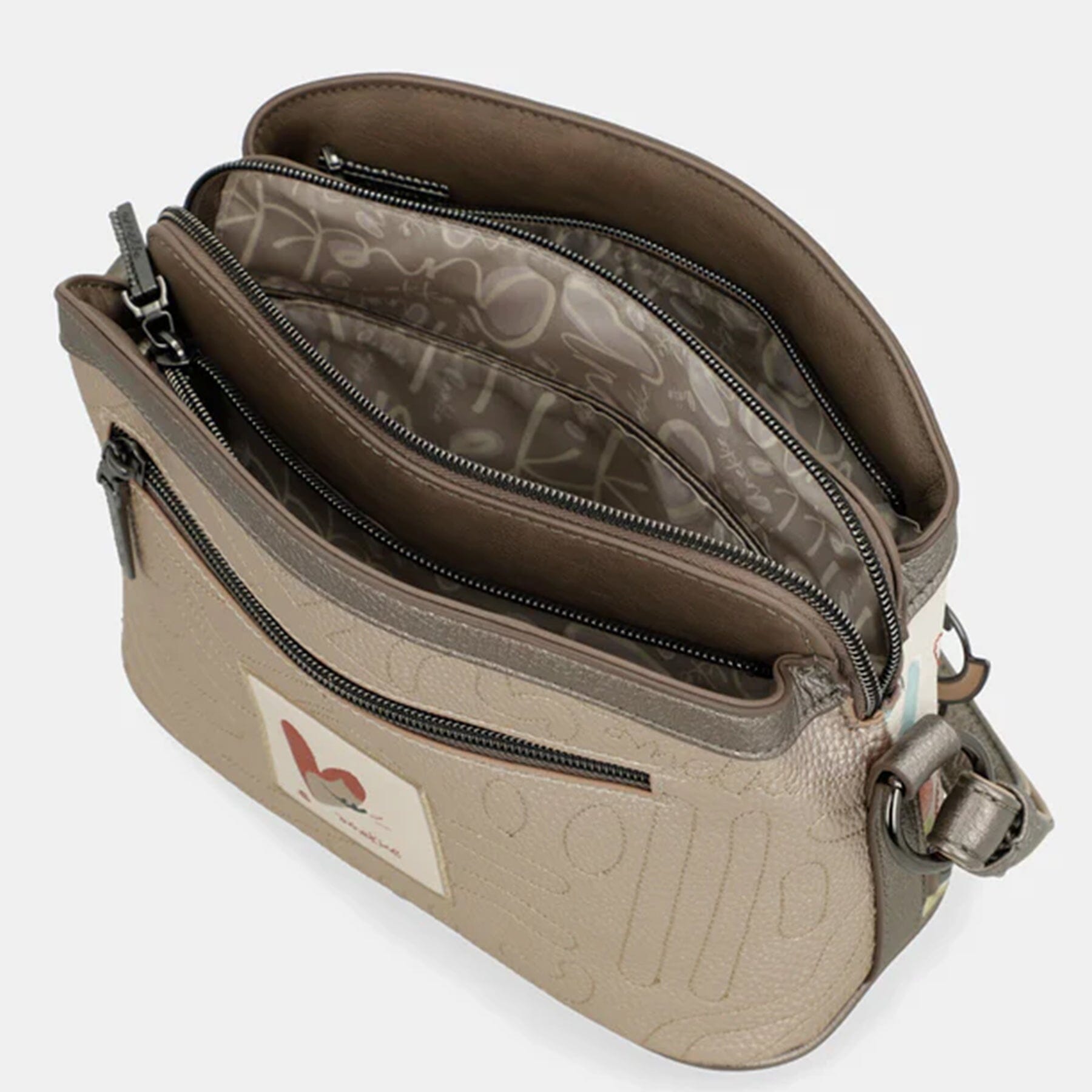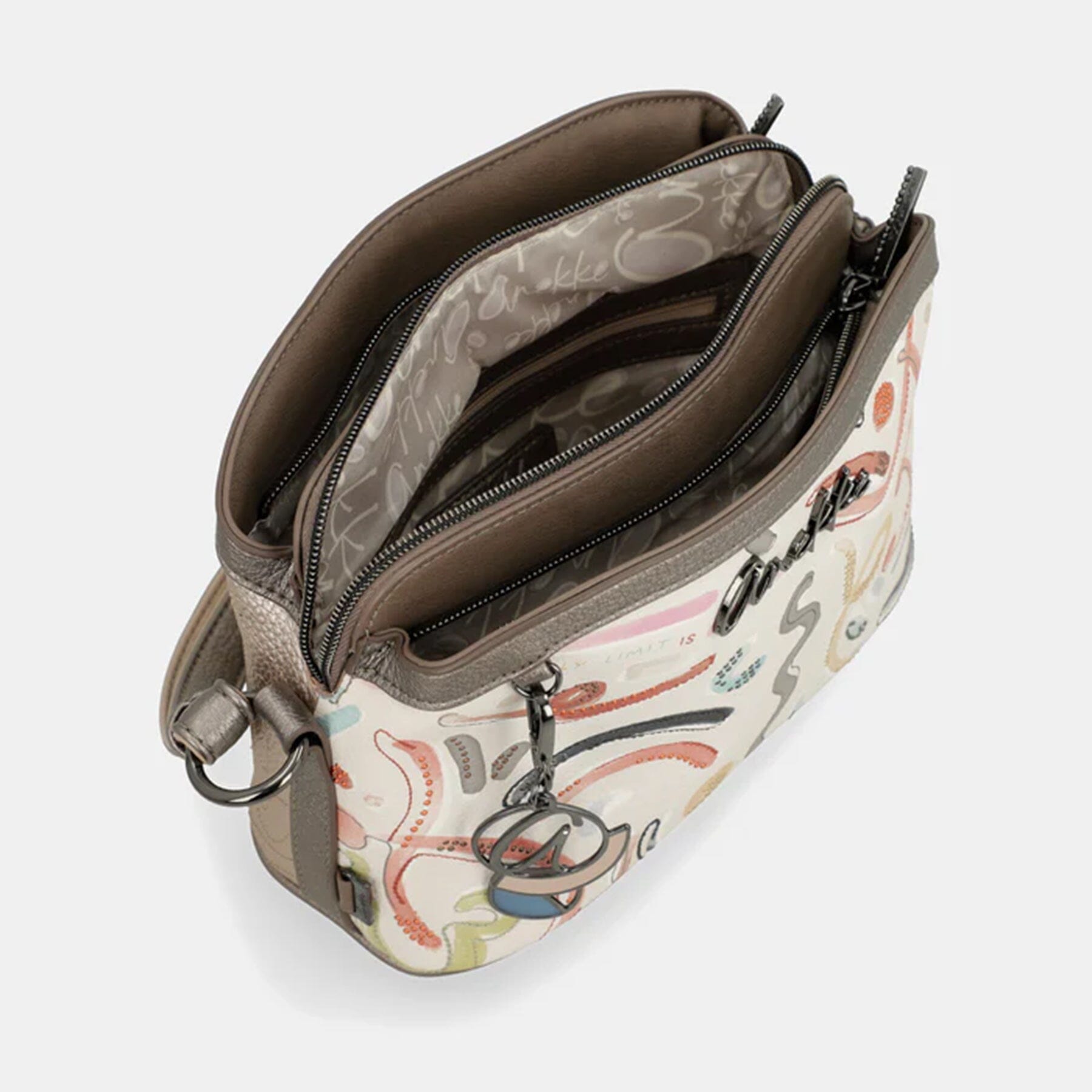 Mala de tiracolo ajustável Anekke com três compartimento com fechos, bolso atrás com fecho e bolsos no interior.