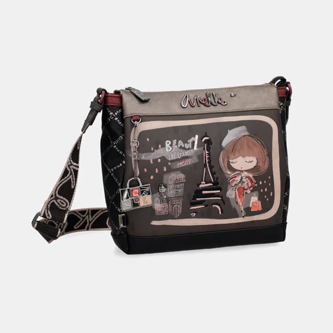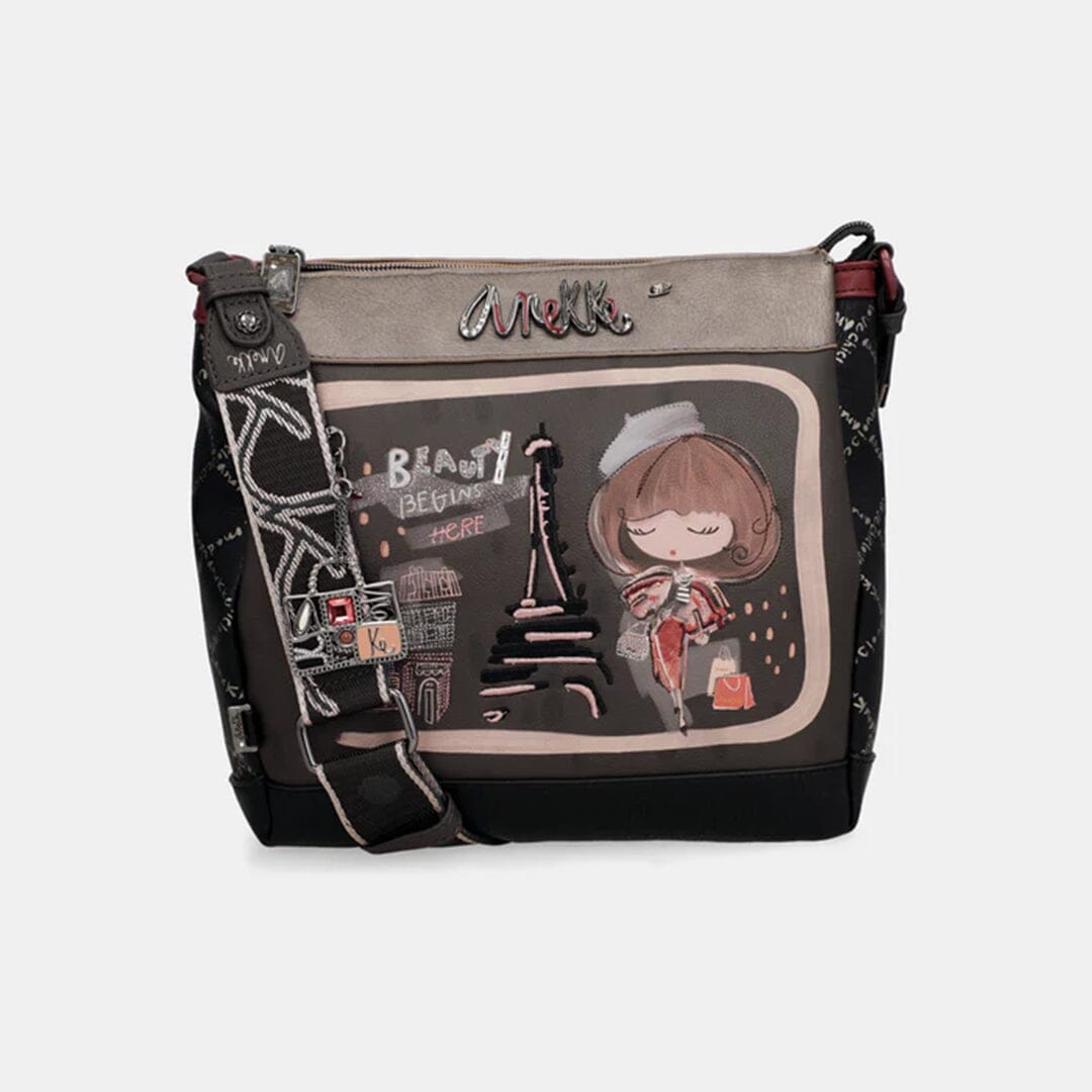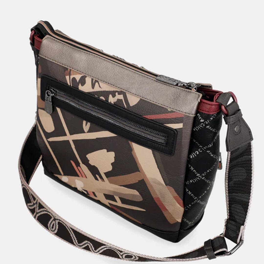 Mala de tiracolo ajustável Anekke com três compartimentos, bolso atrás com fecho. Interior com bolsos com fecho e multiusos.