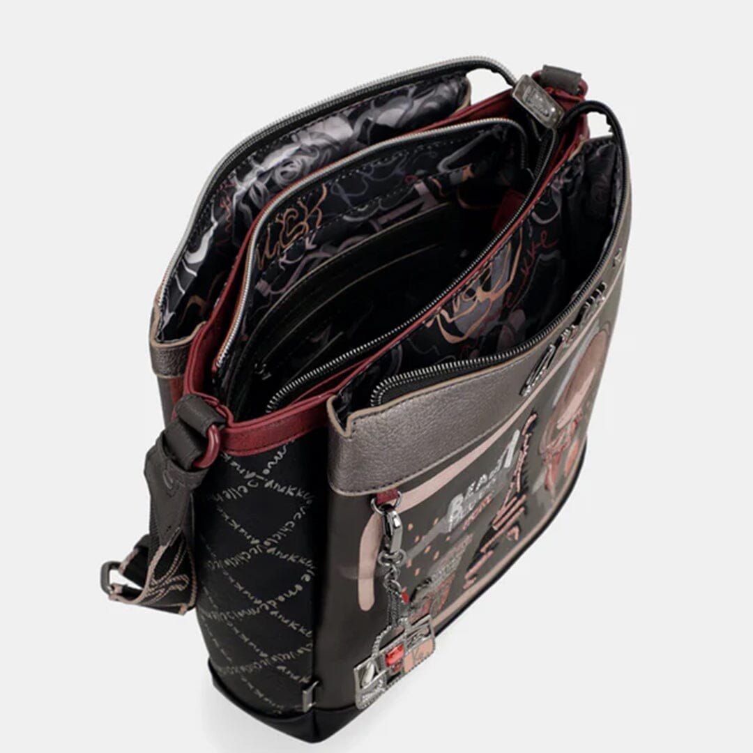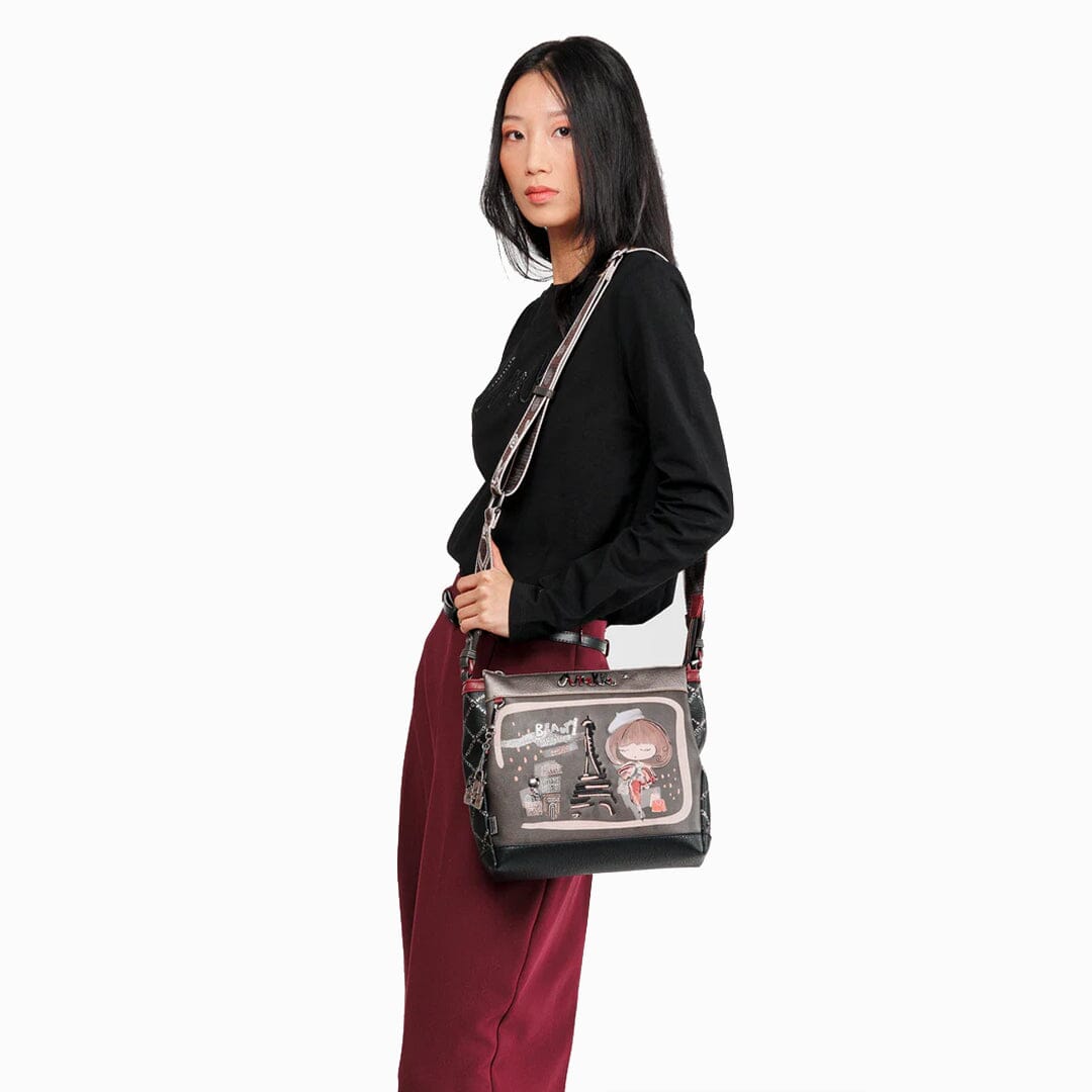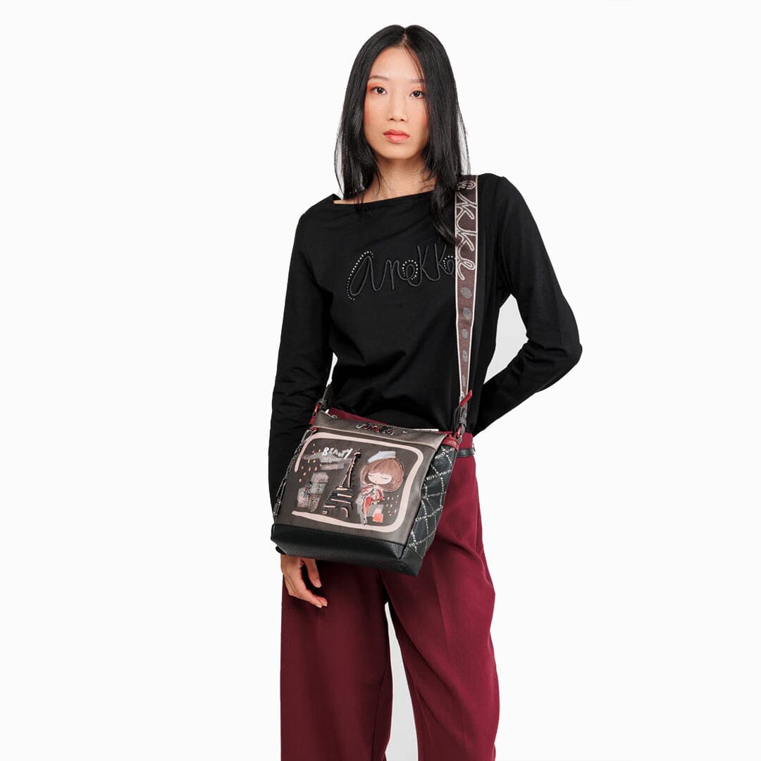 Mala de tiracolo ajustável Anekke com três compartimentos, bolso atrás com fecho. Interior com bolsos com fecho e multiusos.